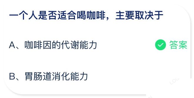 以上是 一个人是否适合喝咖啡主要取决于 蚂蚁庄园7月19日答案最新 的全部内容,来自【游乐园】,转载请标明出处!
