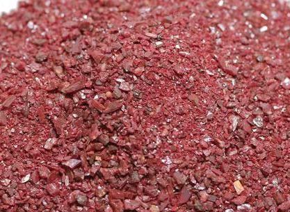 紫金砂是朱砂石的一个产品类型,又叫帝王砂,有原矿渣微粉或是菱镁矿颗粒物抑制成的。紫金砂是通过原矿朱砂颗粒物选用古方抑制而成的, 色调紫红色,表面有星星点点的银白色小颗粒,并不是残渣。破裂面有明显由此可见结晶颗粒物和金刚光泽。特性比朱砂原石硬,横断面呈絮状不规律纹理。