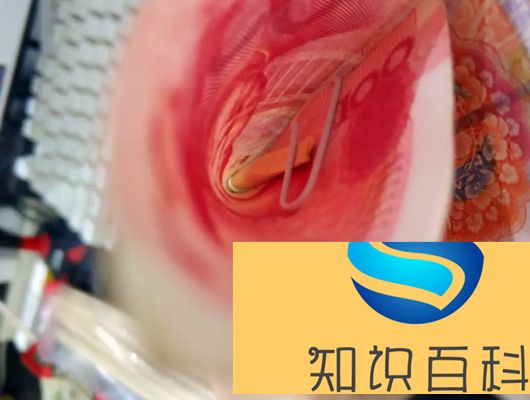 5、最后用竹签子从纸币上面的贷款口子插进来,随后放在回形针下边(用回形针夹到竹签子)。