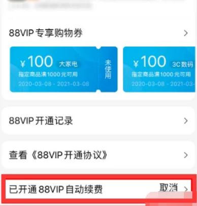 5、进入我的88VIP页面完成后,将页面拉到最后点击已打开88VIP自动续费。