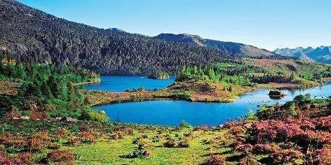 如果是夏季前往香格里拉旅游的话,还能在普达措公园内看到高山牧场野花绽放,星星点点的粉黄夹杂在一大片茂盛的绿色中间,如梦似幻。