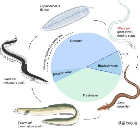 导致资源量锐减,成鳗的自然繁殖陷入了困境,导致种群规模逐渐萎缩,甚至局部消失。鳗鲡的繁殖较为特殊,幼鱼在江河中生长发育,成年后则集中洄游到台湾省以东海域,亲本在水深400~500m的产床中产卵,一条雌鳗可产下700~1300万粒卵子。但仔鳗的成活率却很低,能成功洄游到江河并长至成鳗的几率十分渺茫。有专家做过估算,一条仔鳗自然成熟的几率只有0.0001%,100万尾幼鱼中可能只有一条能顺利降海繁殖。