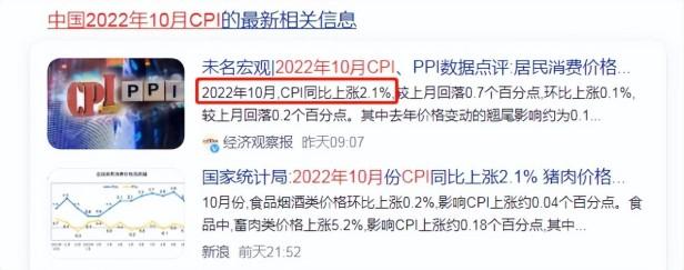 中国10月CPI的涨幅为2.1%,远低于7.7%,