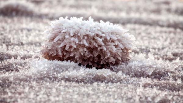 中国死海”山西运城盐湖冬日出现“硝花”景观