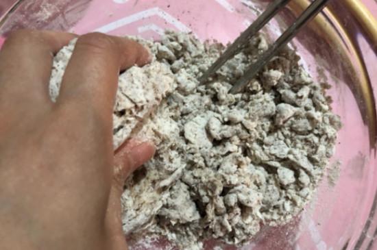 2、将酵母放入少量温水中搅搅匀匀后,再把适量全麦面粉和中筋面粉混合,之后将少量温水倒入混合的面粉中,再用筷子搅成絮状,再把酵母水倒入里面揉成面团。