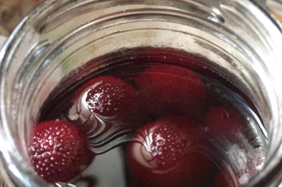 3、倒入适量的白酒,白酒要没过杨梅1厘米,用保鲜膜封住盖上封住。