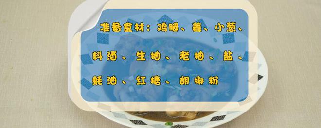 准备食材:鸡腿、姜、小葱、料酒、生抽、老抽、盐、蚝油、红糖、胡椒粉。
