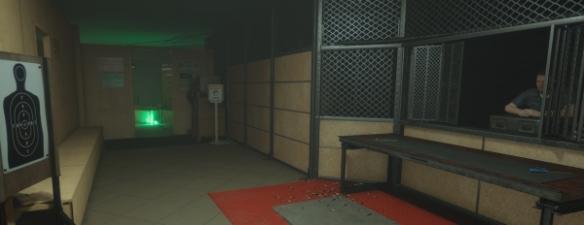 射击室位于楼下,武器改装位置的右边。这里有多种射击目标,且在掩体内外都有,最右侧还有一个挟持人质的练习目标。