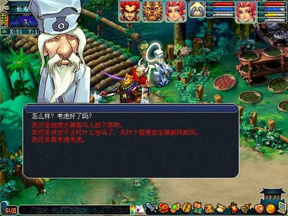 太白金星选择继续寻找马儿—大大王(随机召唤兽1只)—牛魔王(战斗)—红孩儿(需要低级法宝或50W)——周猎户(需要进行战斗,有着一定的难度).