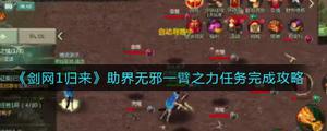 剑网1归来游戏中助界无邪一臂之力任务很多玩家不知道如何完成,下面,游戏爱好者小编就为大家准备了关于这方面的详细攻略,一起来看看吧!《剑网1归来》助界无邪一臂之力任务完成攻略玩家进入游戏后,可以在主页面中看到无邪之忧主线任务,此任务需要8个步骤完成。首先玩家前往界无邪...